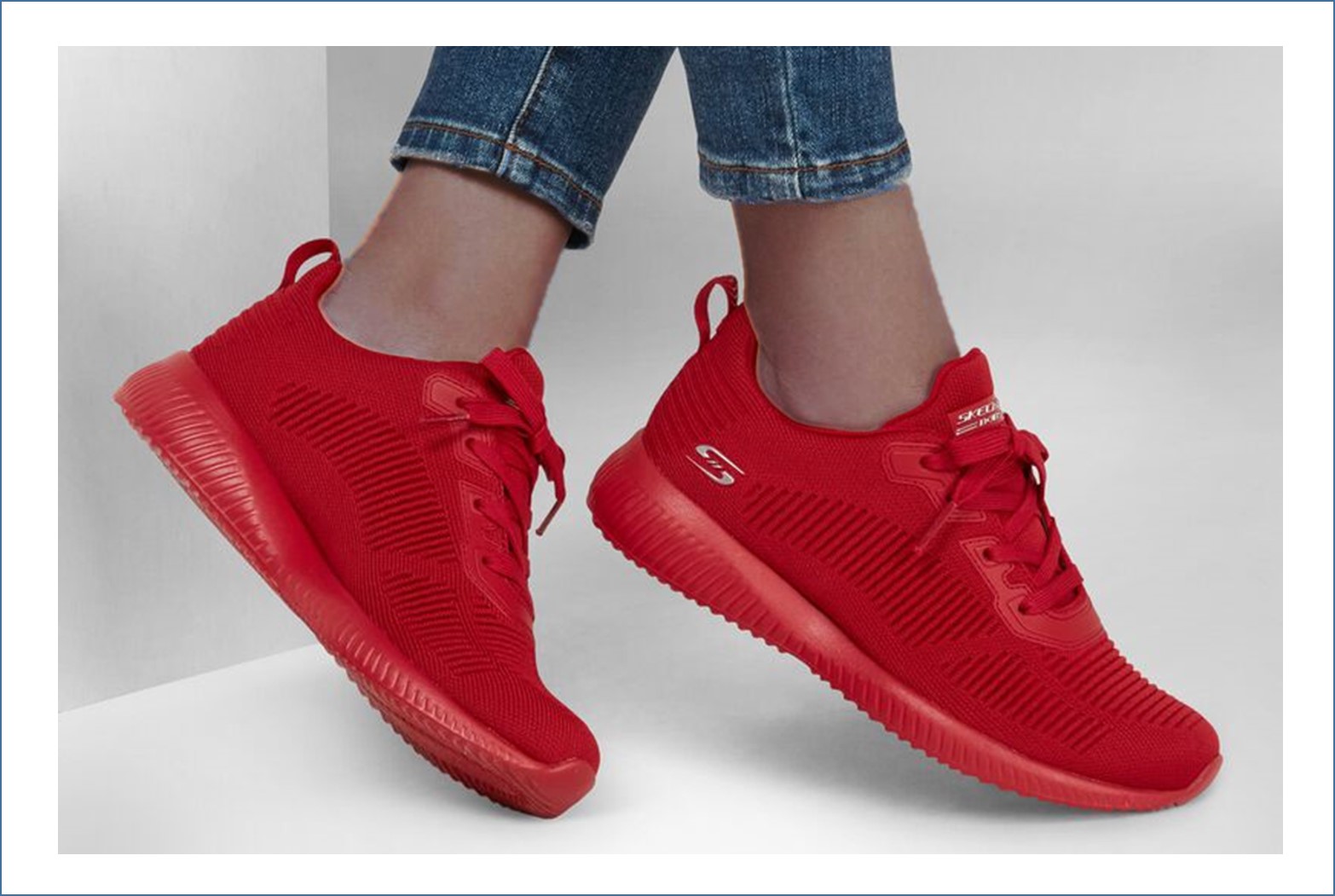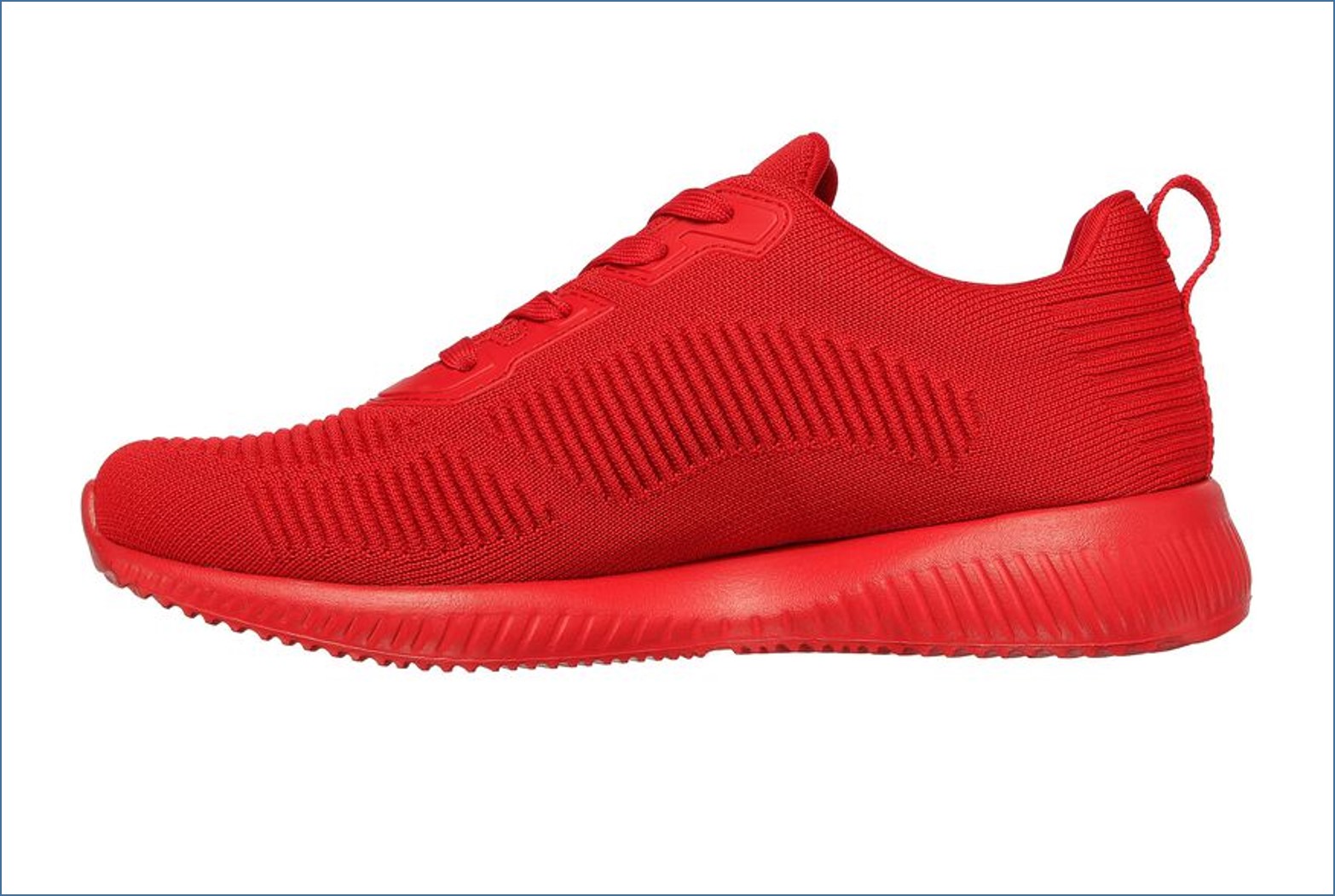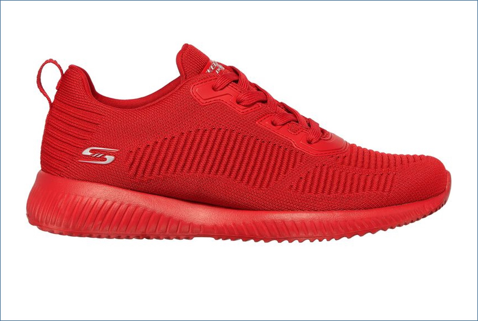 Bold color combines with easy wearing comfort in the Skechers BOBS Sport Squad – Flash Pop shoe. Engineered knit soft woven solid color fabric upper in a lace up fashion sneaker with synthetic overlays and Memory Foam insole